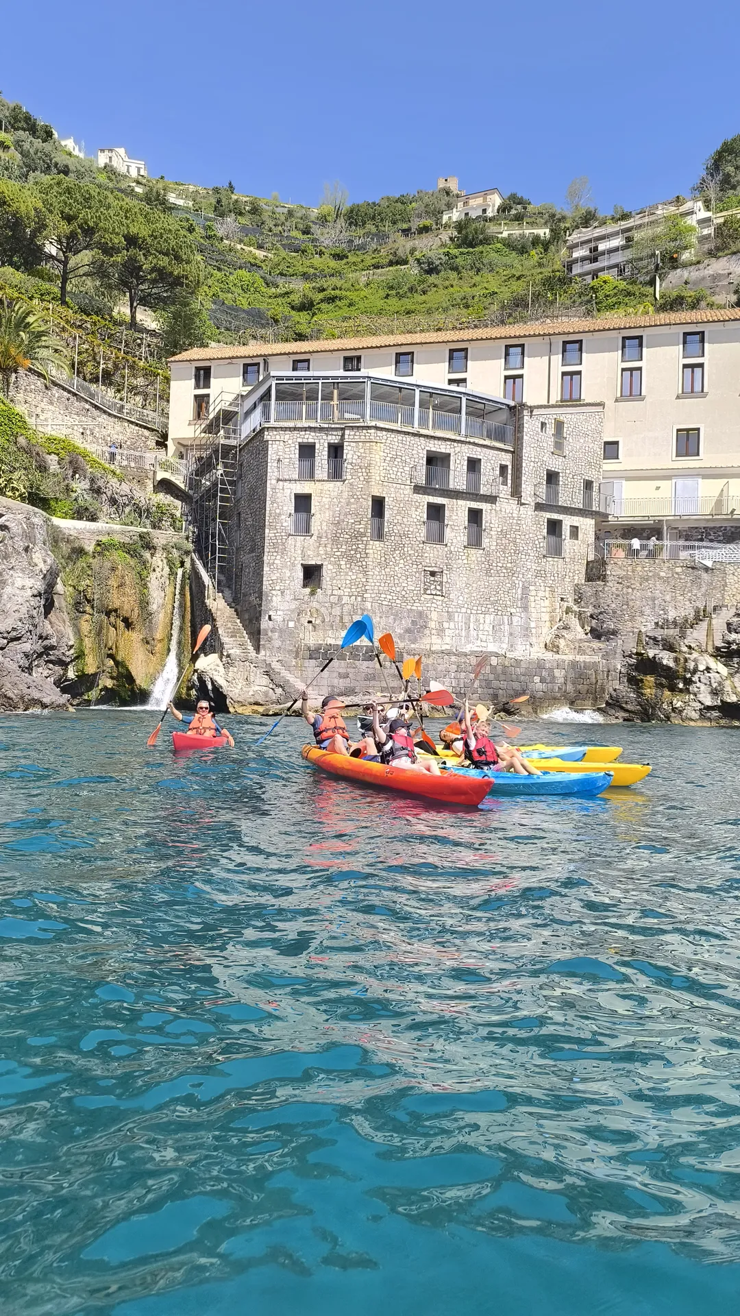 At Tonino o’ Beach, you can rent kayaks or SUP boards to explore the Amalfi Coast at your own pace and be captivated by the stunning views of its coves, cliffs, and beaches. You will discover freshwater fountains flowing into the sea, reefs full of fish beaches inaccessible from the road stone arches and caves.